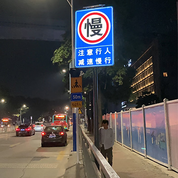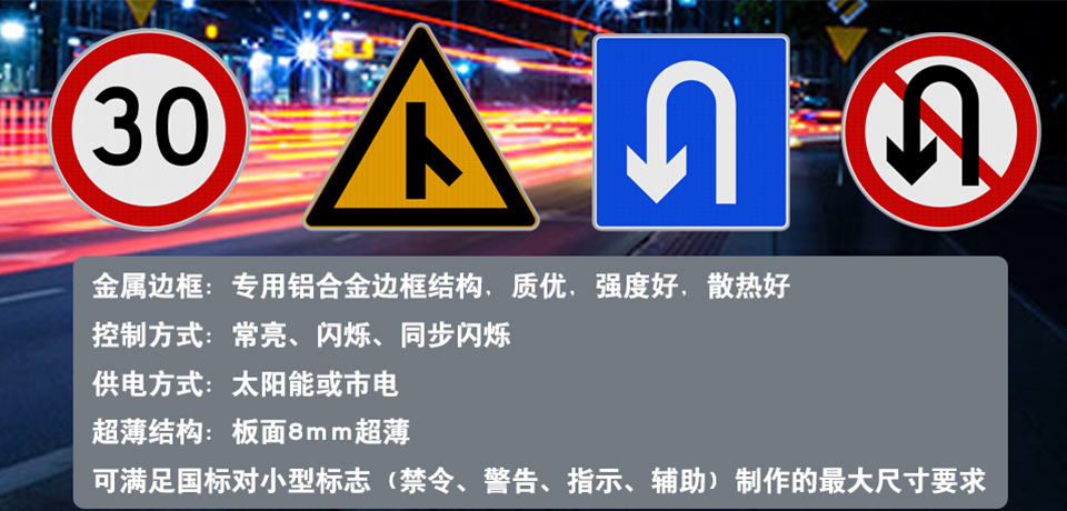 目前主要應用在高速公路、快速道路、城市道路、農村道路以及各類較長時間的施工圍擋區(qū)域,用于禁令、警告、指示等小型國標標志和彎道、分合流等事故易發(fā)多發(fā)點的線型誘導。